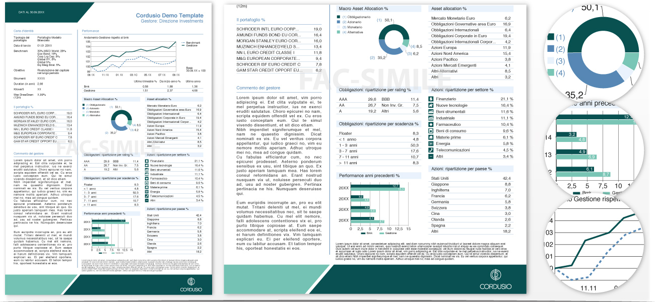 L'impaginazione segue ogni aspetto delle linee guida fornite dalla singola Società di Gestione del Risparmio.