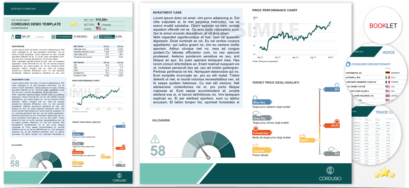 BullBear Report offre tutti i vantaggi di un software per creare schede tecniche esclusivo e gratuito per la tua società, pensato e realizzato per soddisfare specifici criteri di impaginazione ed elaborazione dei dati.